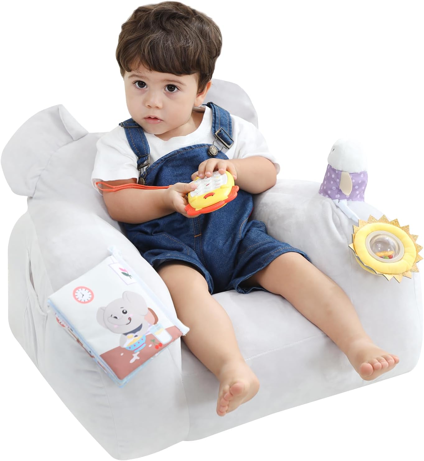 Toddler Sofa Chair, Soft Toddler Kids Chair with Learning Toy Phone,Cloth Book and Rattle Toy,Toddler Chair Couch for Boys and Girls Ages 1+ Years Elephant