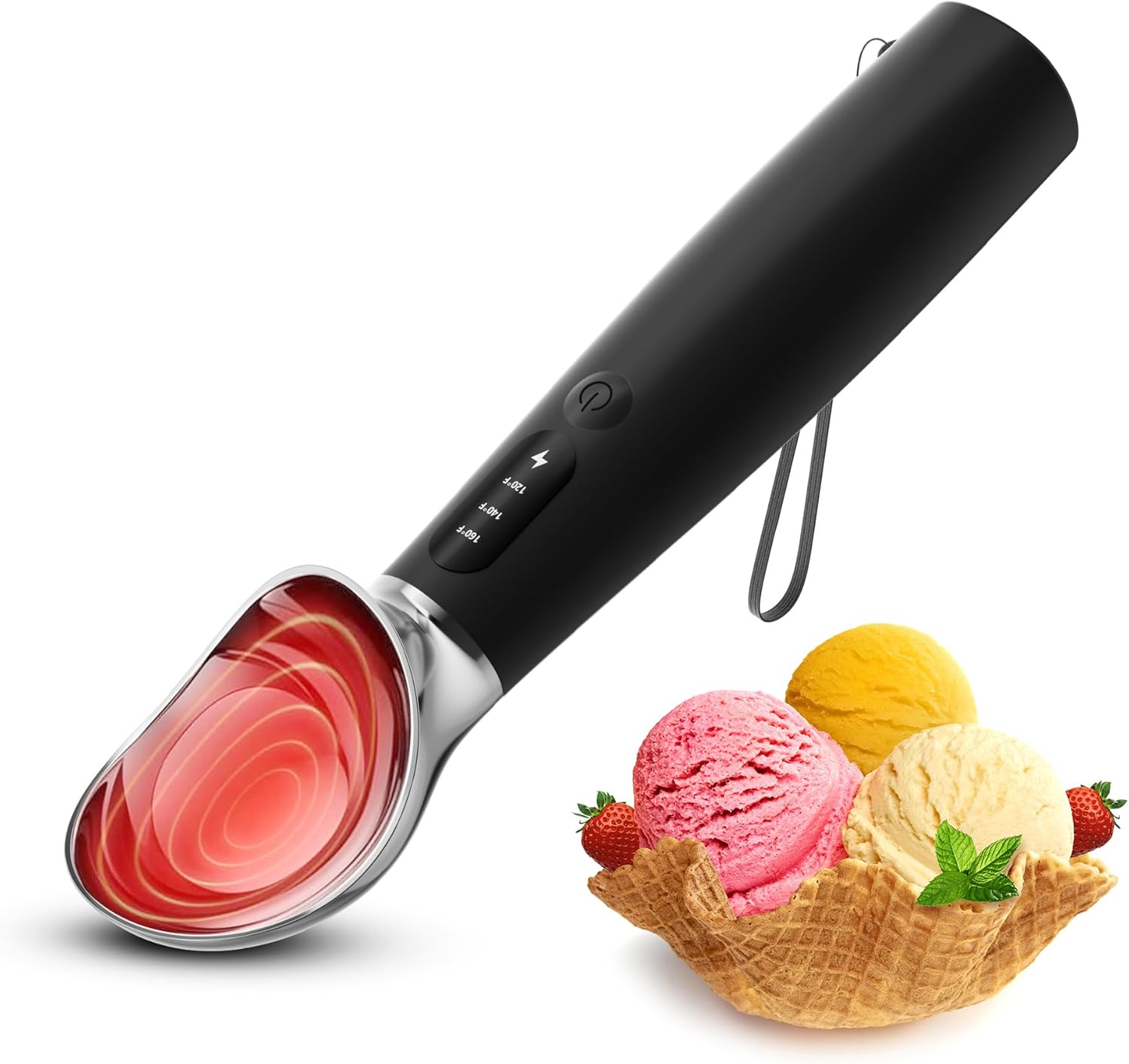 Electric Heated Ice Cream Scoop, Fast Heating Ice Cream Scoop 3-Level (120°F/140°F/160°F) for Rock-Hard Ice Cream, Typc-C Rechargeable Warmer Ice Cream Scooper, IPX7 & Easy Clean, Ergonomic Gift