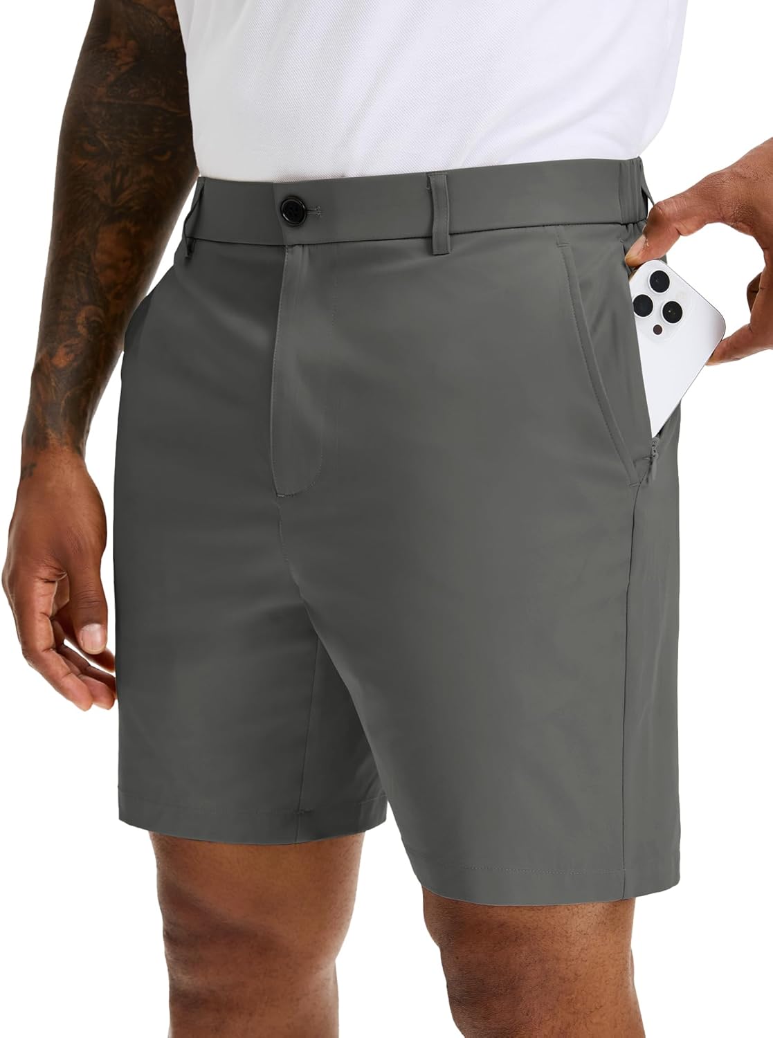 Shorts for Men 7 Inch Slim Fit Dress Shorts Quick Dry Lightweight Polo Shorts with Hidden Zipper Pocket Dark Gray L